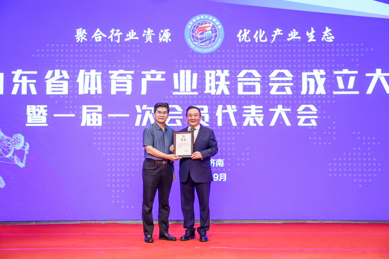 会上,审议通过山东省体育产业联合会章程、选举办法和会费管理办法,表决选举第一届理事、监事,选举产生联合会第一届会长、副会长、秘书长、监事长、副监事长。hth·华体产业集团董事长卞志良当选为首届理事会会长,山东省体育产业发展服务中心主任翟培建当选为首届理事会副会长兼秘书长。