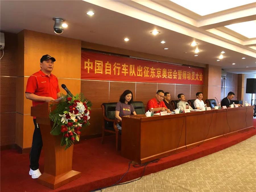 近日,东京奥运会中国体育代表团名单正式公布,代表团总人数为777人,其中运动员431人,教练员、领队、科医人员等运动队工作人员307人,团部工作人员39人。本届东京奥运会是中国体育代表团境外参赛规模最大的一届奥运会。其中自行车项目代表团由17人组成,运动员9人、工作人员8人。7月14日,中国自行车队出征东京奥运会誓师动员大会在老山训练基地举行,hth·华体副董事长卞青峰受邀出席并致辞。