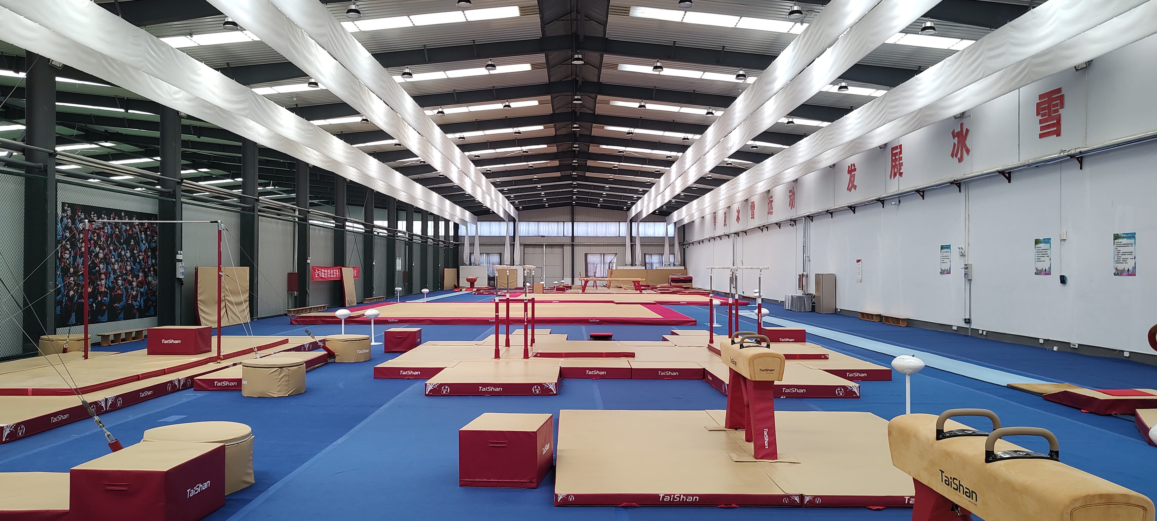 目前,在场馆与场地器材保障部的全力工作之下,训练馆、比赛馆场地搭建等赛前准备工作也按计划顺利开展中,训练馆已经搭建完毕、焕然一新,即将投入到运动员们的训练任务中!