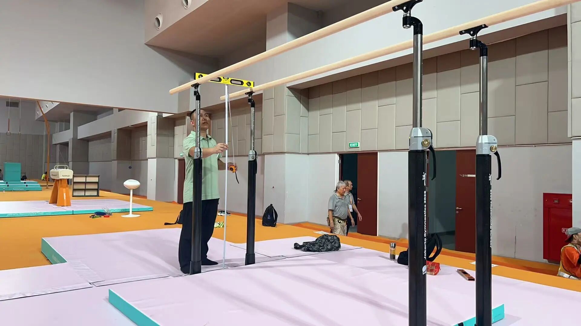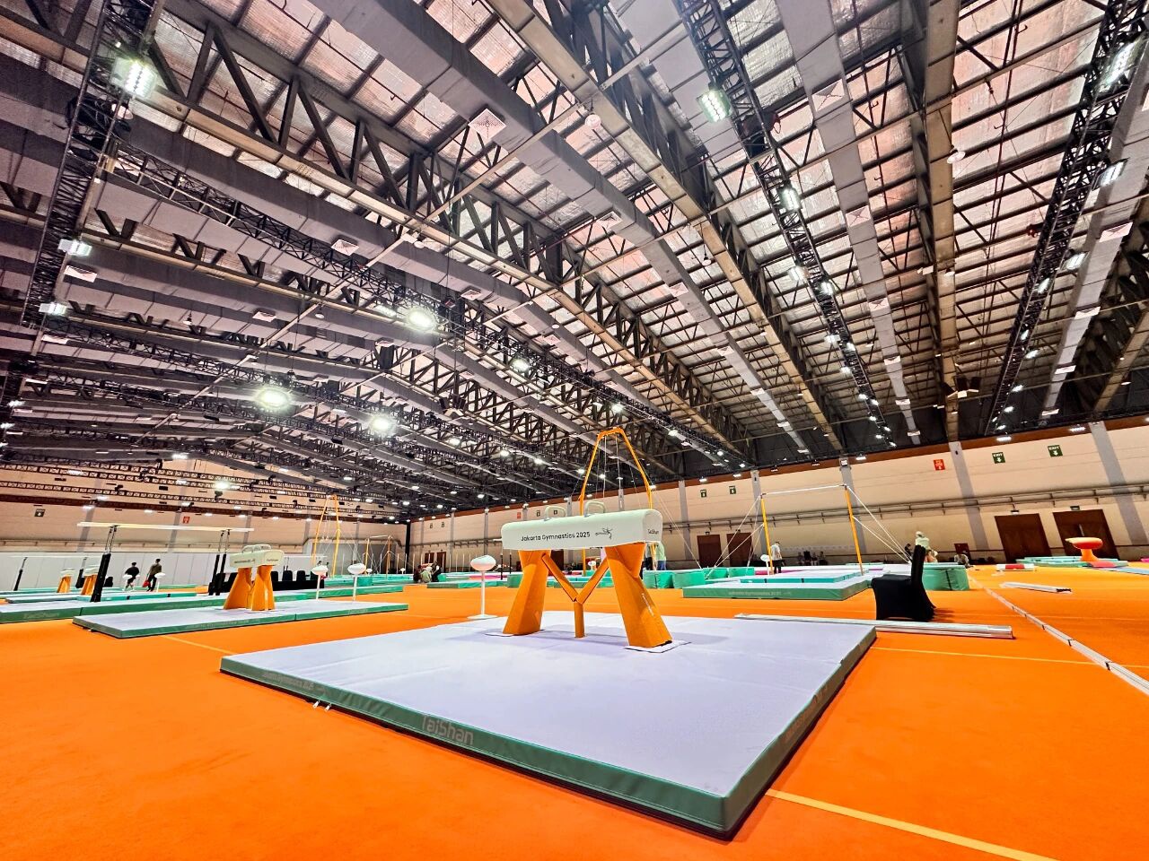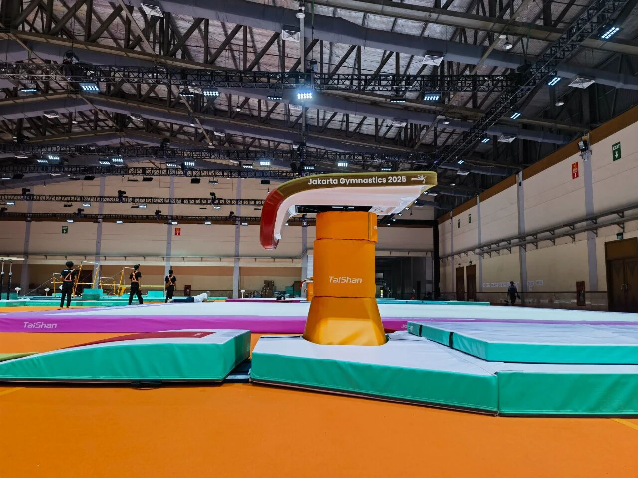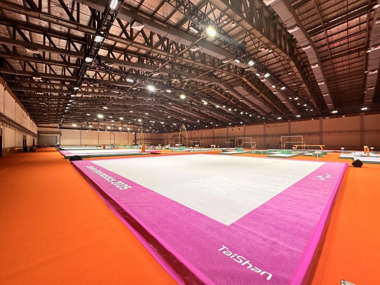 自10月3日筹备工作启动以来,各项工程稳步高效推进。目前,热身馆与比赛场地的铺设作业已全面完成,训练馆安装也进入收尾阶段。场地规划充分考虑了运动员的多样化需求,铺设材料均选用行业顶尖产品,确保性能卓越、安全可靠。由核心技术骨干与资深工程师组成的服务保障团队已全员就位,将24小时全程待命,为赛事顺利举行保驾护航。